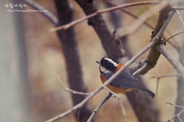 주말오후 집에서 빈둥되고 있는데 재협군이 창밖을 보며 "짹짹이다" "짹짹이다" 를 외치 더군요. 뭐.. 참새나 까치나 왔겠지 하고 밖을 봤는데 남다른 포스를 풍기는 녀석이 나무가지를 돌아다니고 있더군요. 처음에는 요즘 자주 보이는 때까치 인가 했는데 그녀석은 아닌 듯하고. 신기해서 잽싸게 카메라를 들고 몇컷 찍어 보았습니다. 좀더 자세히 촬영하고 싶어 창문을 열었더니 눈치 빠른 녀석이 휙 날라가 버렸습니다. 베란다 창문 넘어로 촬영해서 화질은 좀 떨어집니다. 옛날 기억을 더듬다 곤줄박이라는 이름이 떠올라서 인터넷 검색을 해봤더니 이녀석 곤줄박이가 맞더군요. 집이 저층에 앞의 공터도 사람이 전혀 돌아다니지 않는 곳이다 보니 주말 오후 새구경도 하고 재미있네요. 다음주에는 잣이라도 구입해 잠복하면서 새 사진..
